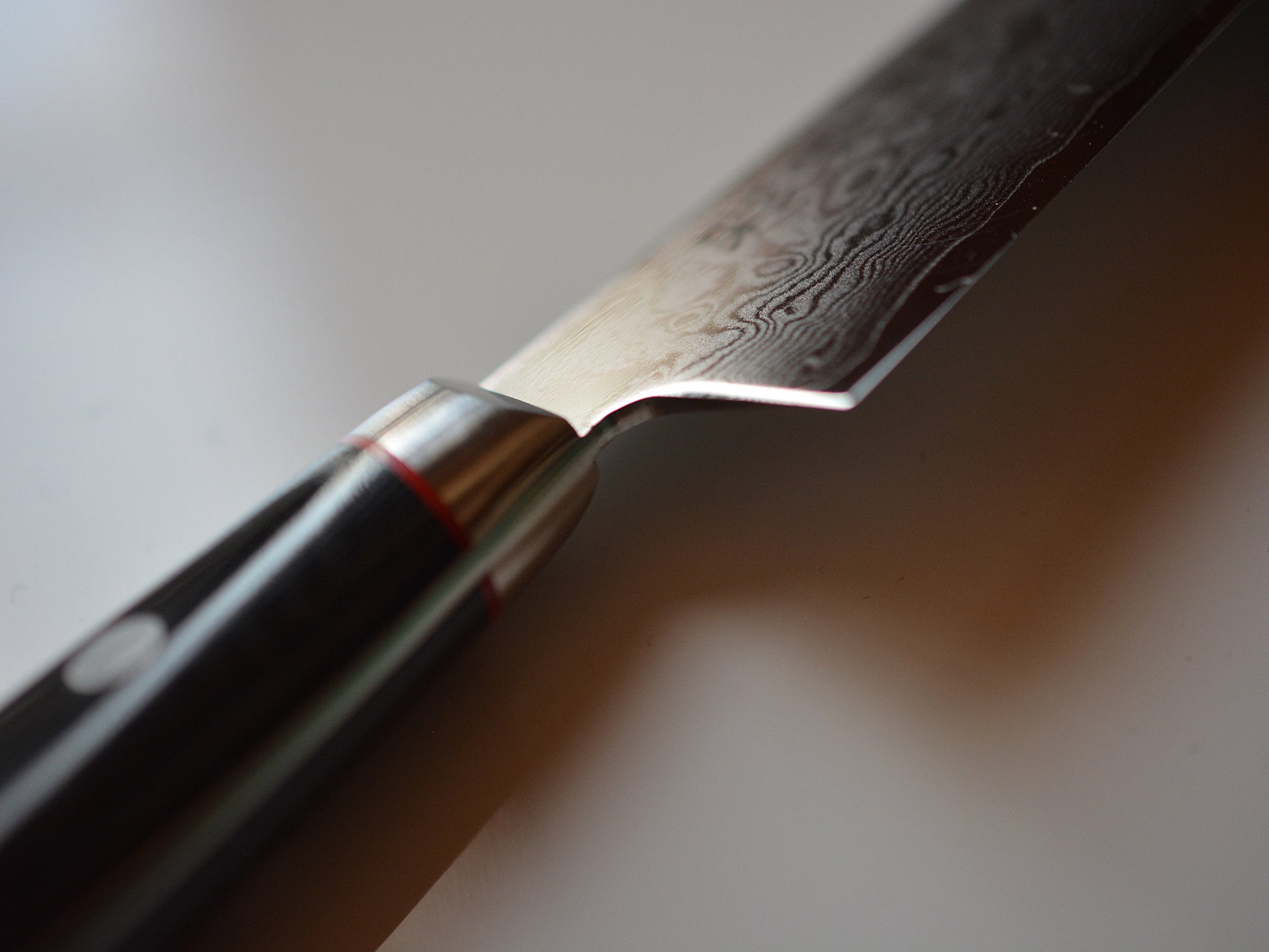 Esta parte se llama Tsuba. No hay espacio entre la hoja y el mango. Asi que no se queda la bacteria y puede usarlo higiénicamente. Cuchillo de cocina de clase alta siempre tiene Tsuba.